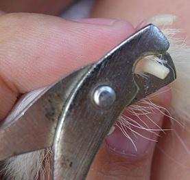 - Realízalo en un lugar bien iluminado para no tener fallos. Debes cortar solo la parte de la uña y fijarte bien donde empieza la parte de la carne para no cortar esta parte que tiene una vena interior que no hay que tocar en el corte. Fíjate en la parte blanquecina que es la uña y corta solo un mínimo de cada uña. Respeta la forma de la uña realizando el corte ligeramente inclinado. Si cortaras más de la cuenta, lava la herida, tapa la uña y acude al veterinario.