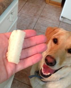 - El tamaño del trozo de pan debe ser proporcional al tamaño del perro, esto hará que sea más fácil que digiera la pastilla.