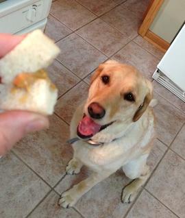 Lo primero que tienes que hacer es enseñarle a tu perro un trozo de pan o algún producto que le guste mucho.