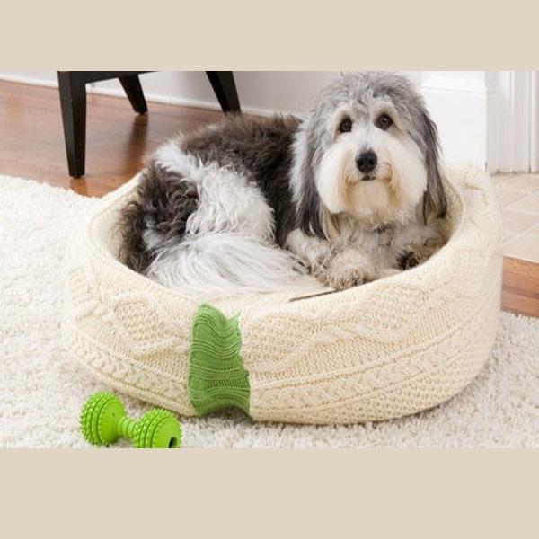Una última opción muy simple es fabricar una cama con un jersey de tamaño grande. ¿Quién no tiene alguna prenda de abrigo que ya no use? Pues seguro que si miras en tu armario, encontrarás algún jersey XXL. Coge la prenda y rellena con más ropa usada, o incluso usa un viejo almohadón, para darle mucho volumen. Una vez esté bien relleno, el jersey debe quedar bien ajustado con la tela y deberás cortar la tela que sobre, con la que puedes crear unos flecos decorativos si quieres. Después, tendrás que unir las mangas cosiendo o bien con un velcro que puedas abrir cuando quieras para lavar toda la cama.