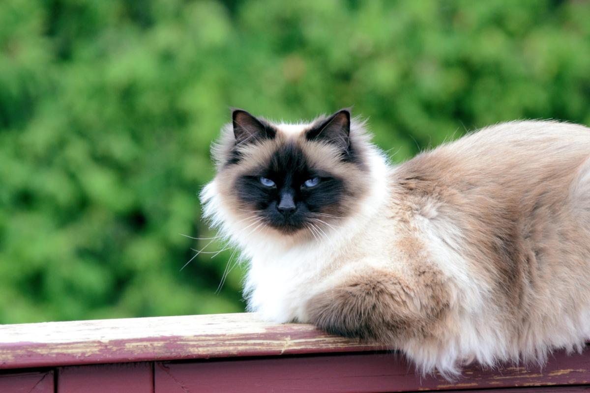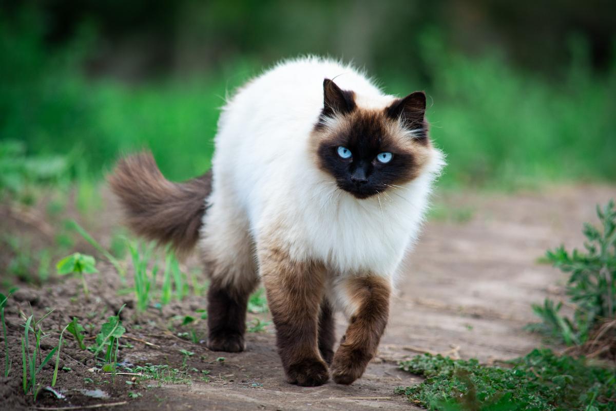 Suele ser confundido con el siamés o el persa, ya que es el resultado del cruce entre ambas razas. Sus ojos son azules y la zona de la cabeza es de color marrón oscuro, degradando a marrón claro según avanza el pelaje. El cuerpo es blanco y para tener un pelo impecable, lo debes cepillar a diario.