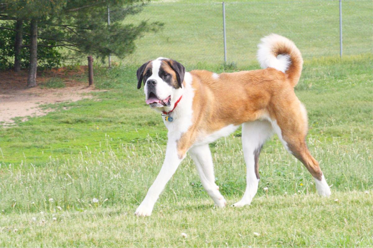 Se trata de una de las razas de perros grandes más famosas. Llega a medir 80 cm a la cruz y su peso alcanza los 90 kg. El San Bernardo necesita mucho espacio para moverse y un cuidador que conozca perfectamente sus necesidades, así como los aspectos básicos para adiestrarlo en positivo, ya que tiene mucha fuerza.