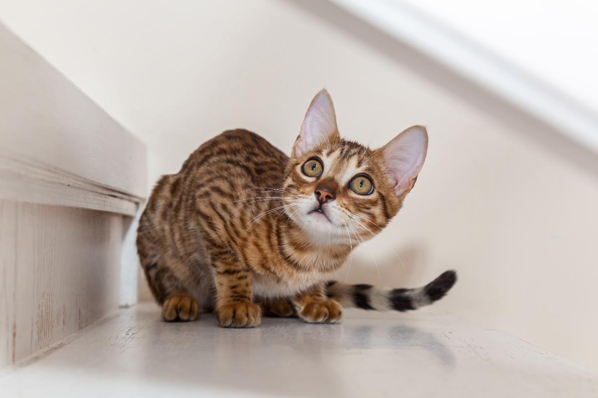 Con todo el misticismo oriental, el gato Bengalí no tiene orejas con mechones, pero su pelaje manchado o moteado lo hace parecer un felino salvaje. Es uno de los gatos domésticos más exóticos y elegantes, y aunque no se parece tanto al lince en estructura, sí lo evoca por su mirada intensa y su aire salvaje.