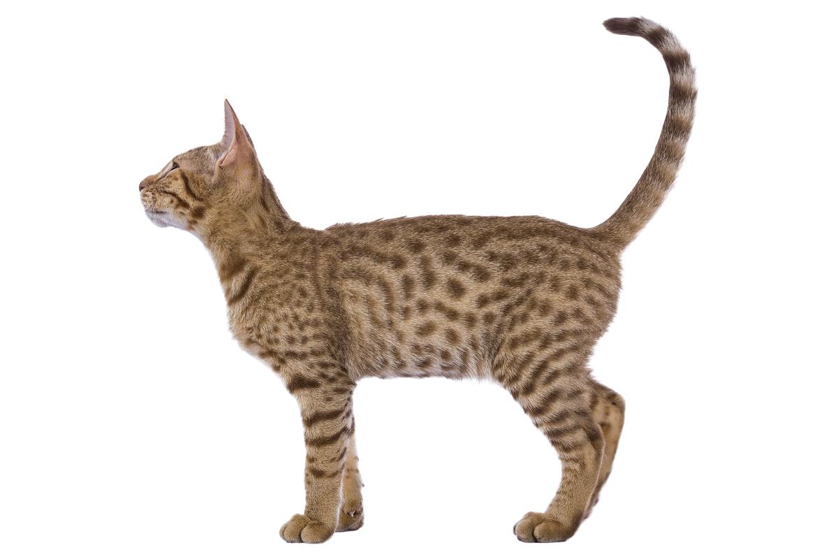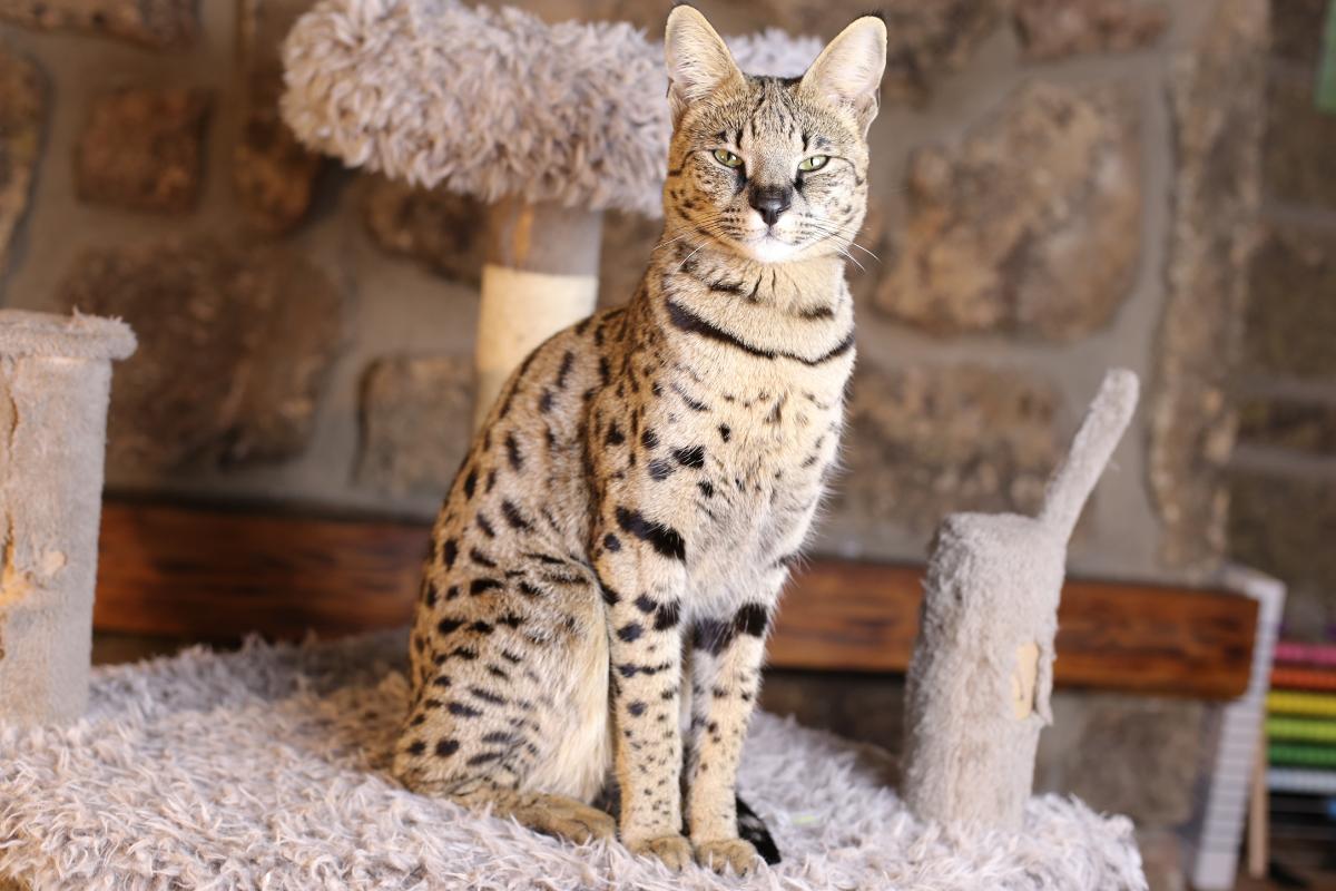 El Savannah es un cruce entre un gato doméstico y el serval africano. Aunque es más parecido a un guepardo que a un lince, sus orejas altas, cuerpo largo y comportamiento salvaje lo incluyen entre las razas con estética exótica.