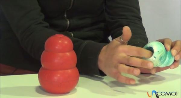 El Kong es un juguete interactivo, que sirve tanto para estimular la mente de los perros, como para tratar el estrés por separación. Este juguete es muy resistente y lo puedes encontrar en distintos tamaños, por lo tanto, dependiendo del tamaño o raza de tu perro, escogerás el tamaño grande o pequeño. El objetivo de este juguete es que tu perro este entretenido durante bastante tiempo, intentando sacar la comida que has colocado en su interior y esto le ayudará a estar distraído durante un buen rato, en casos de pasar mucho tiempo solo en la casa. Una vez rellenes el Kong con alimentos, el perro empezará a oler y hurgar para poder sacar la comida de su interior y de esta manera estimularás su olfato y habilidades mentales. Si miras el siguiente vídeo de unComo.com, verás cómo elegir un Kong para tu perro. (Vídeo protagonizado por el equipo de Ludocan)