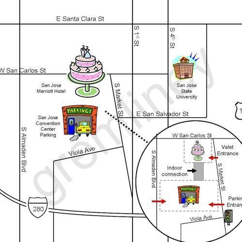 Las bodas son ocasiones felices para casi todos, a excepción de los invitados perdidos. Mantenga a sus invitados felices con un mapa incluído en la invitación de boda, y que les permita acceder a la ceremonia, donde aparcar y, de ser posible, a la recepción también.