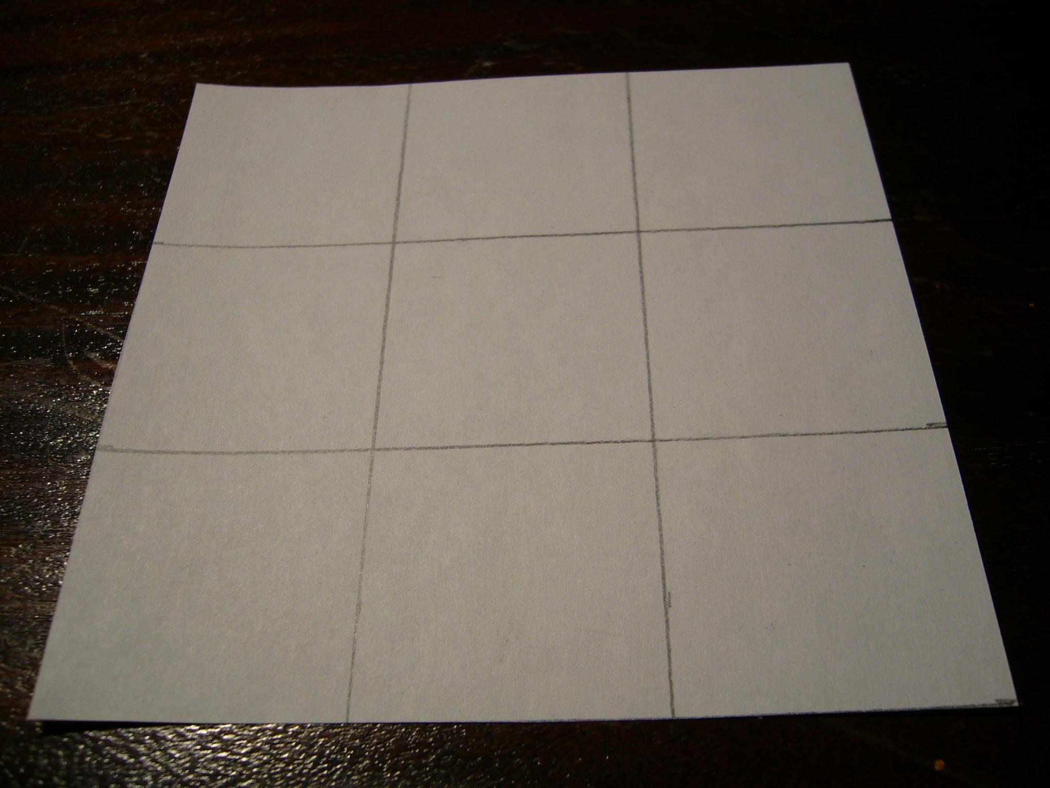Haz una cuadrícula de 3 cuadrados horizontales y 3 verticales. Los cuadrados deben medir 4 centímetros.