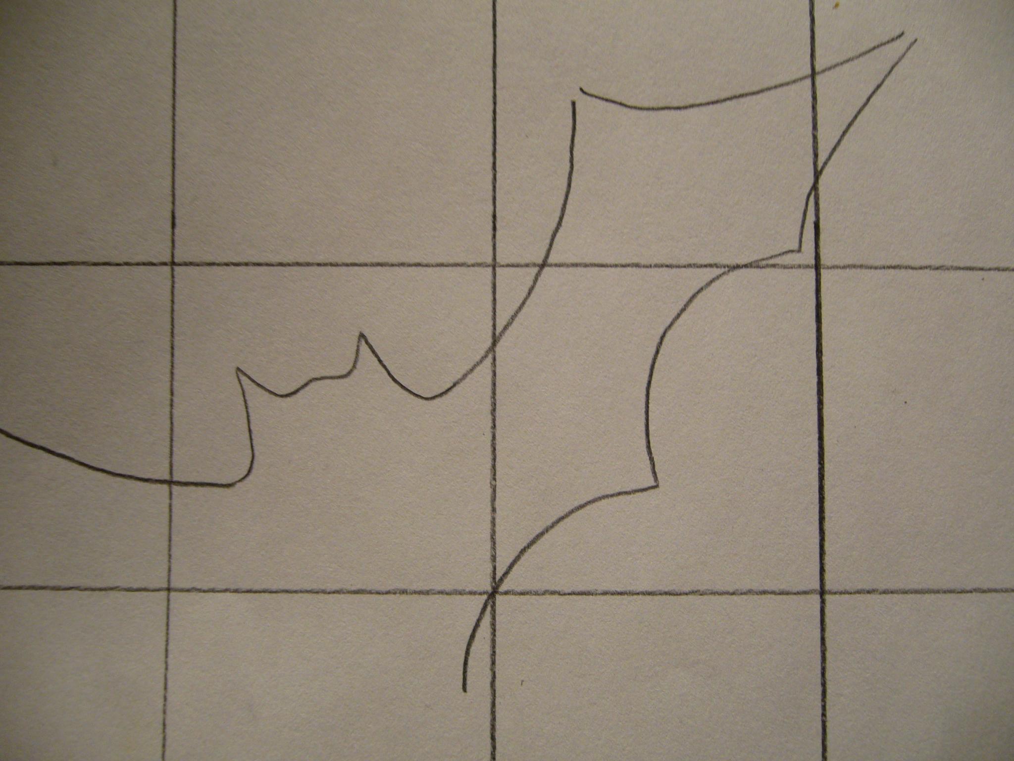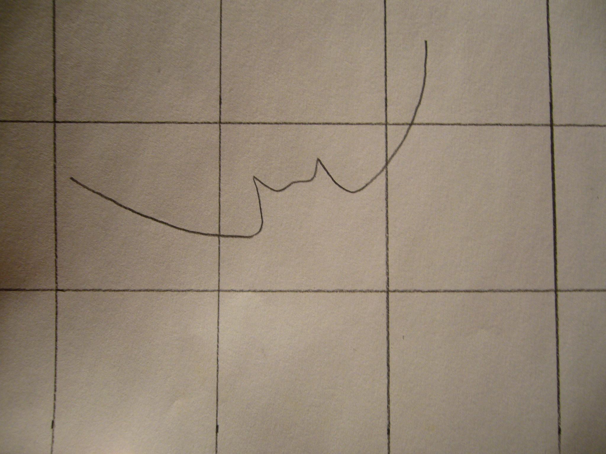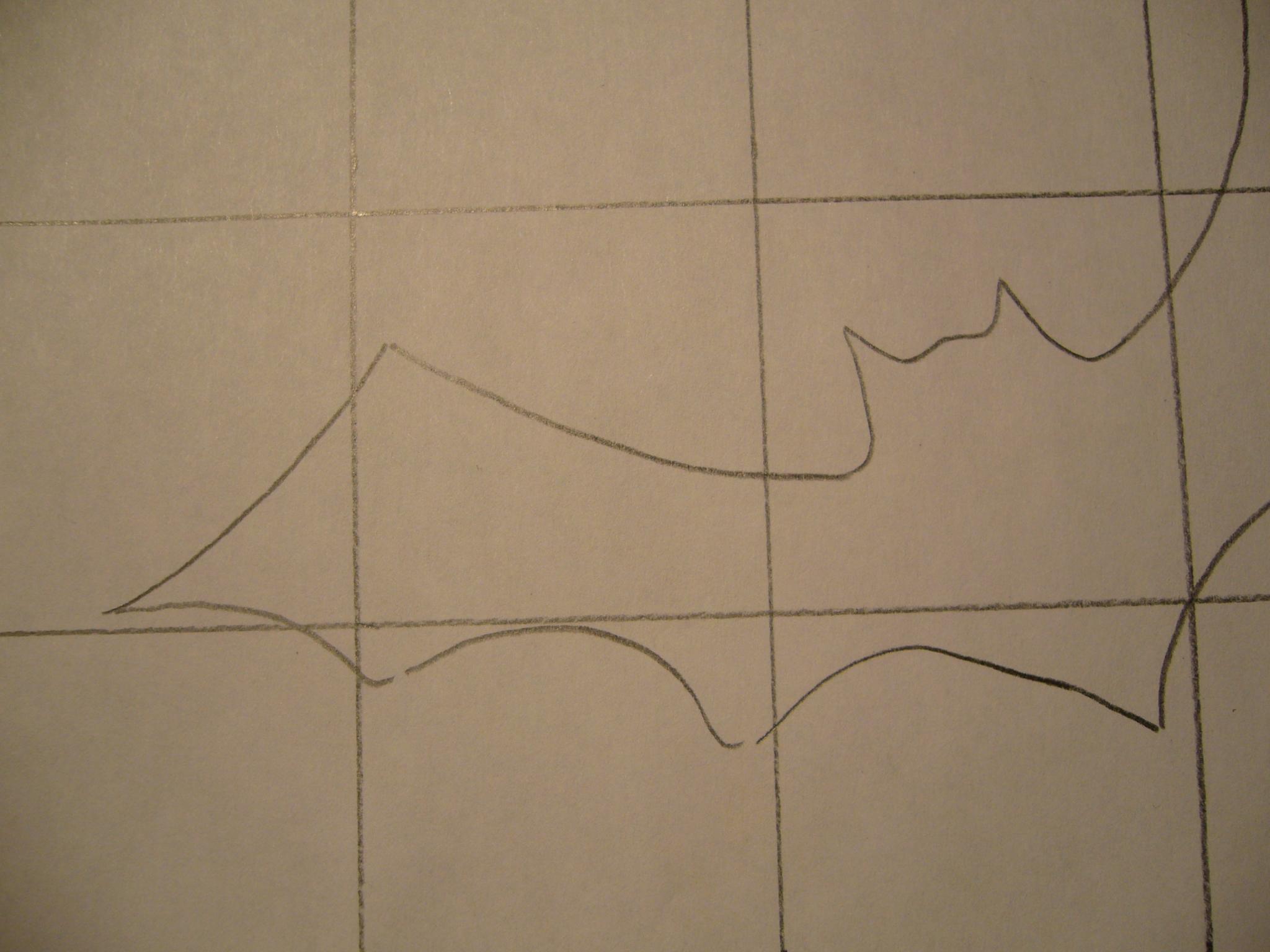 Termina de dibujar la ala derecha de la silueta del murciélago. Observa la foto.