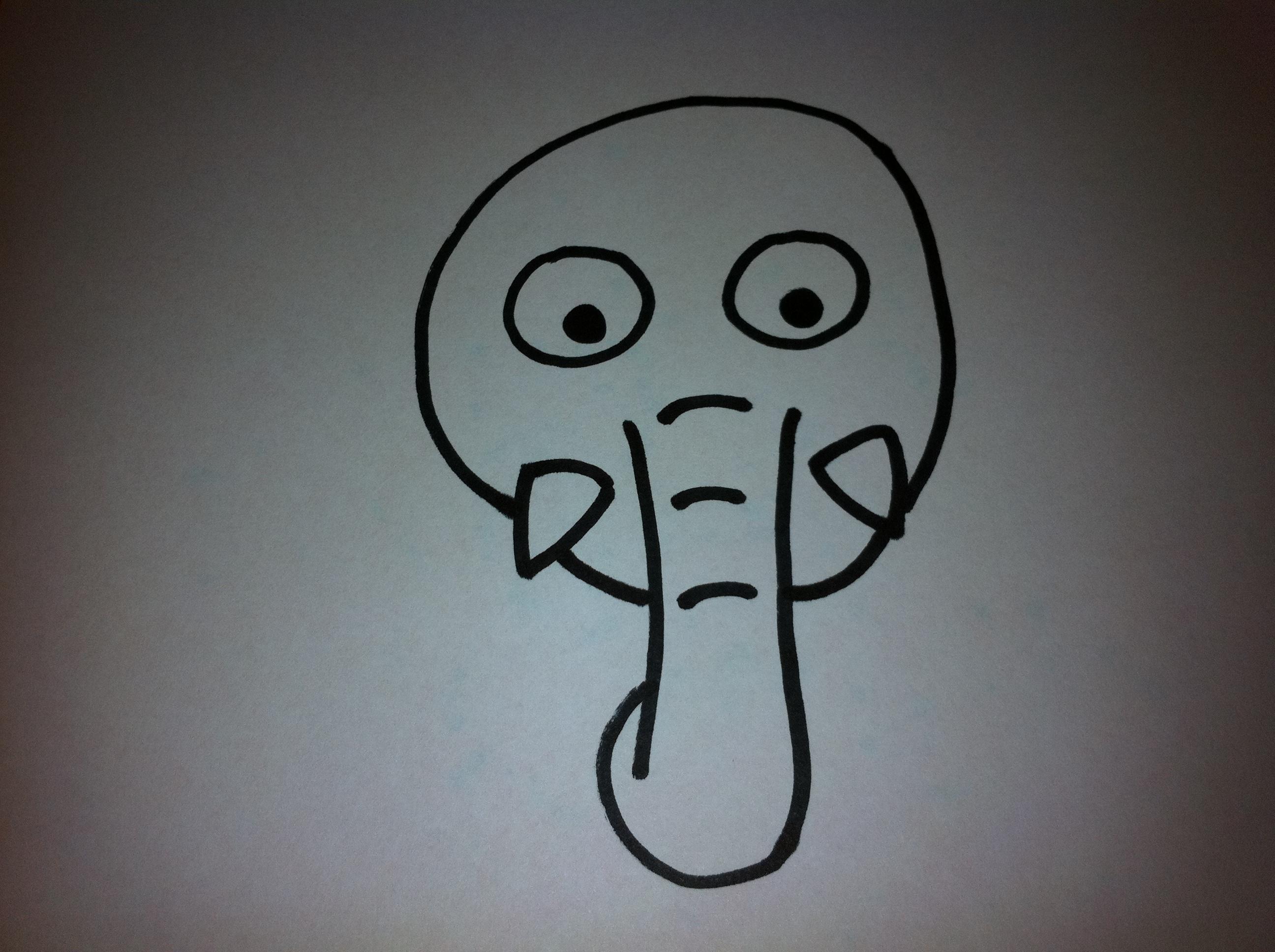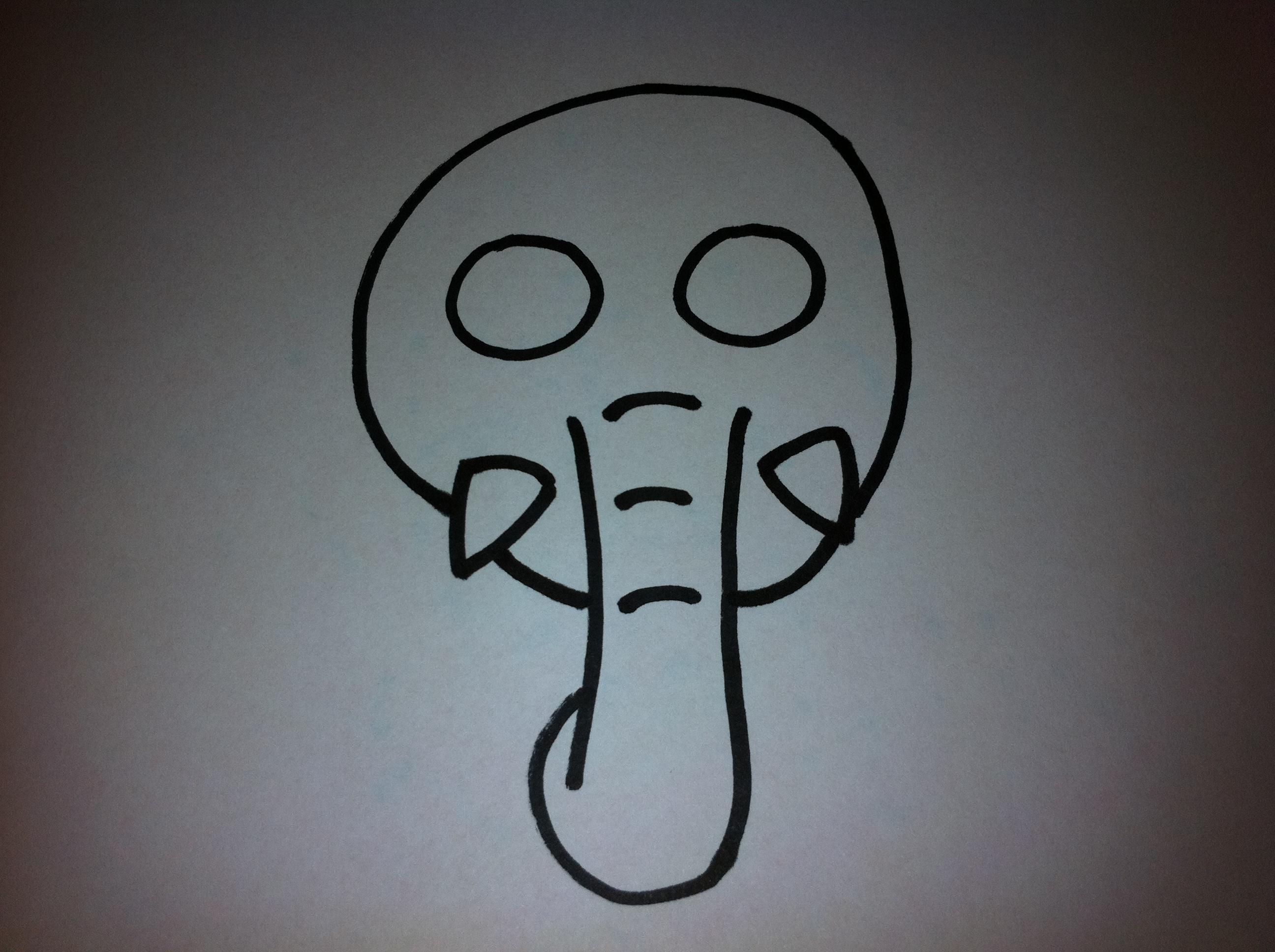Finalmente, añade el detalle de las orejas. ¡Ya habrás conseguido dibujar un elefante de dibujo animado!