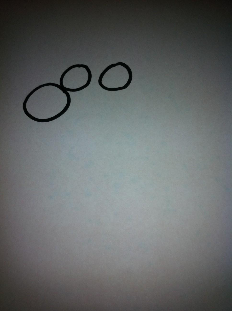 Coge una hoja en blanco y dibuja los dos ojos del reno (procura dibujarlos uno al lado del otro y en la parte izquierda de la hoja para que tengas espacio para dibujar el cuerpo.)