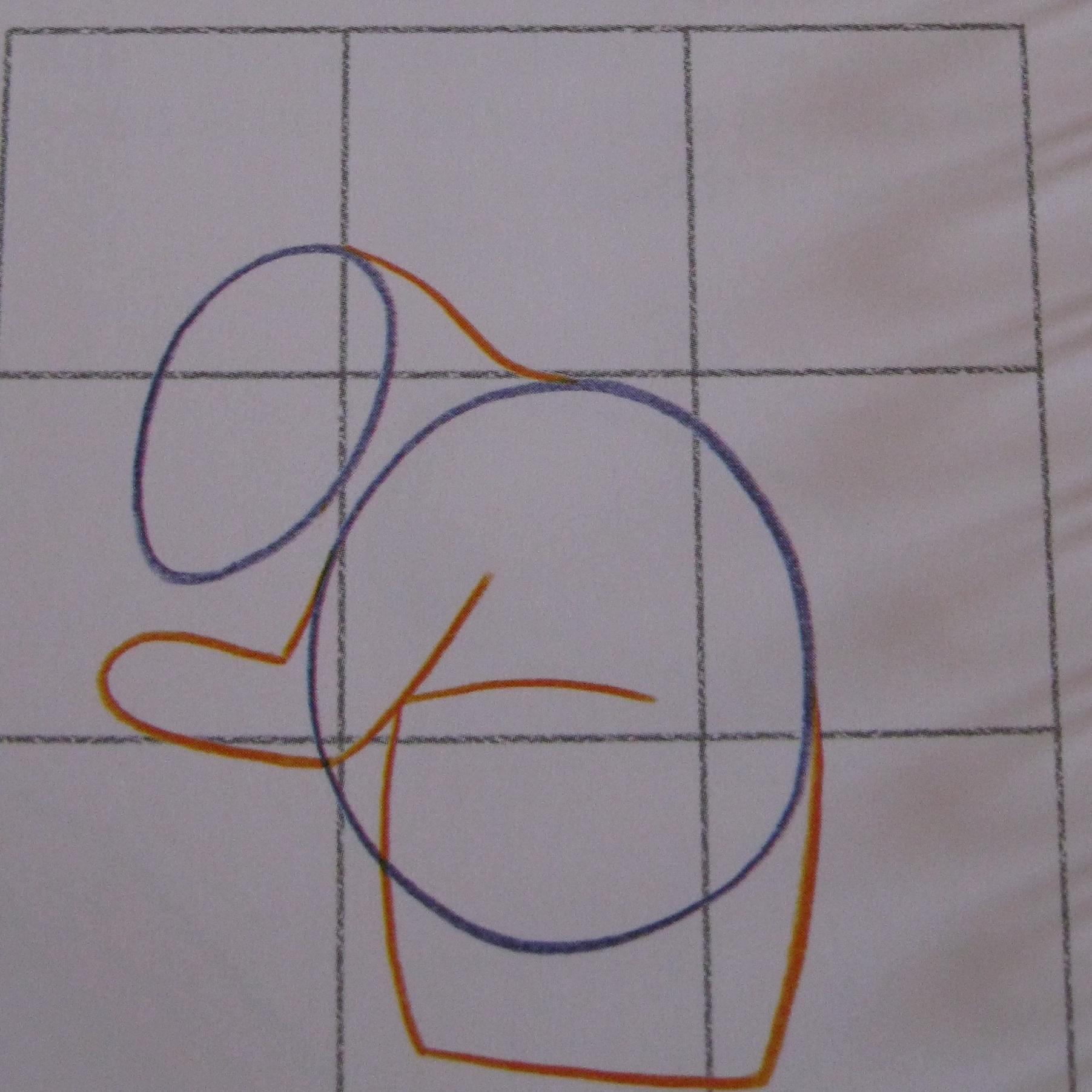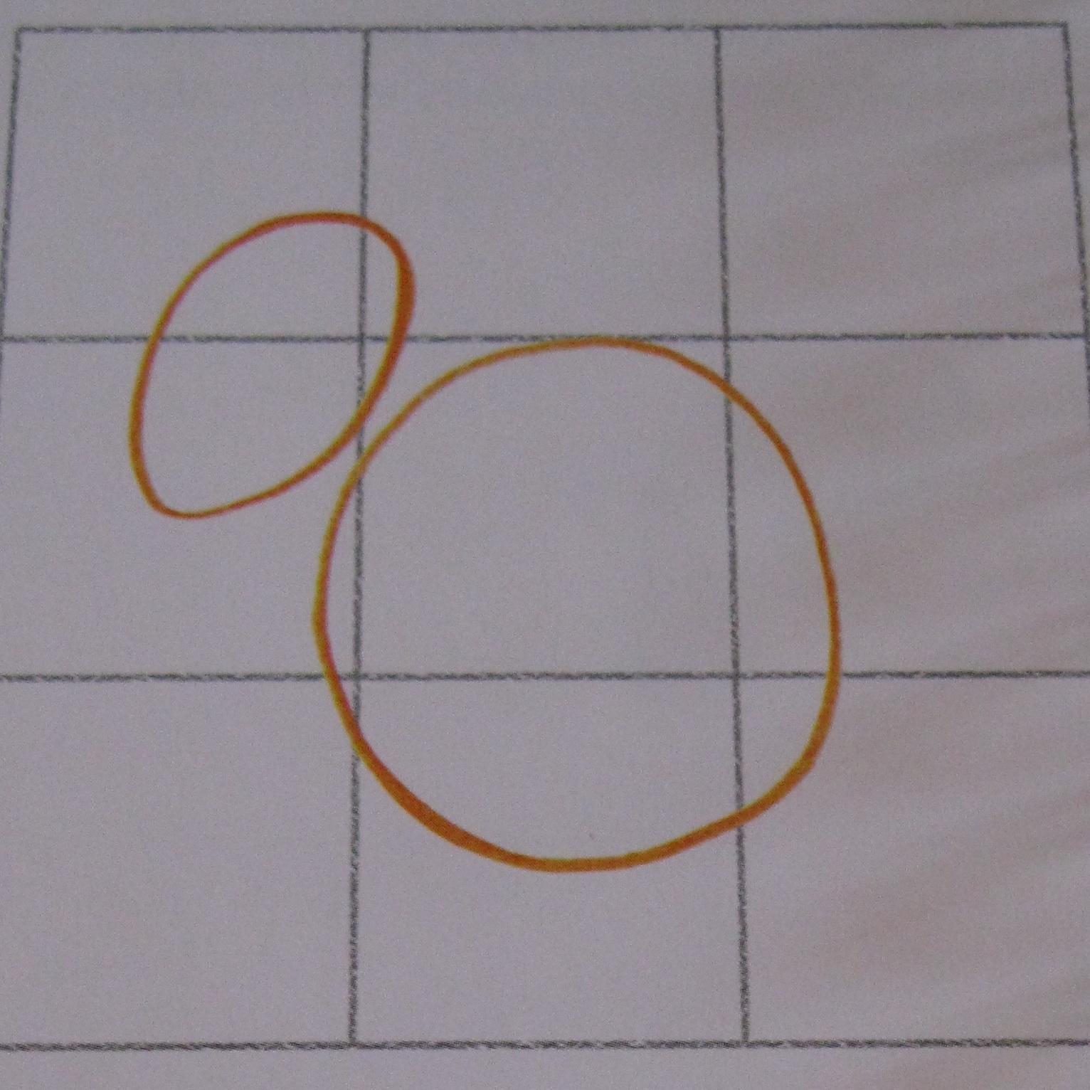 Dibuja tres cuadrados iguales horizontales y 3 cuadrado verticales. Comienza delineando un círculo para la forma del cuerpo ligeramente por debajo de la mitad de la cuadrícula. Traza la forma de la cabeza, que parece un óvalo mirando hacia un ángulo del suelo para empezar a dibujar la ardilla.