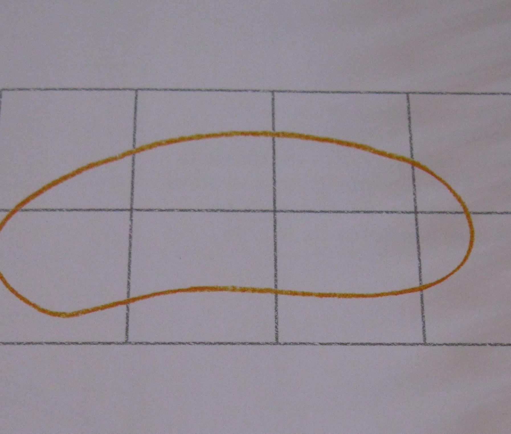 Dibuja una cuadrícula con cuatro cuadrados iguales horizontales y dos verticales. Comienza con una forma que parece una judía alargada en la parte izquierda de la cuadrícula. Comprueba que tu forma se parezca a esta antes de avanzar al siguiente paso.