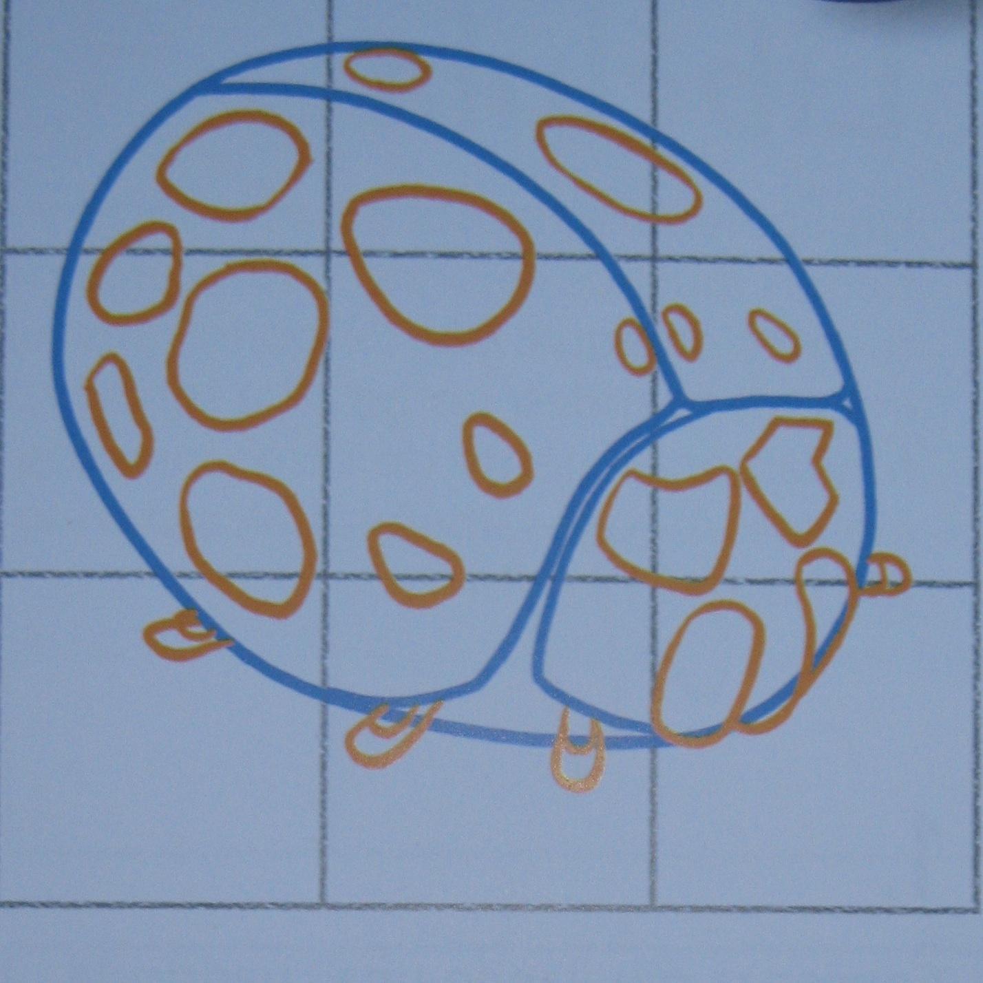 Casi ya has terminado el dibujo de la mariquita. Resalta la zona superior del caparazón de la mariquita al pintarla.