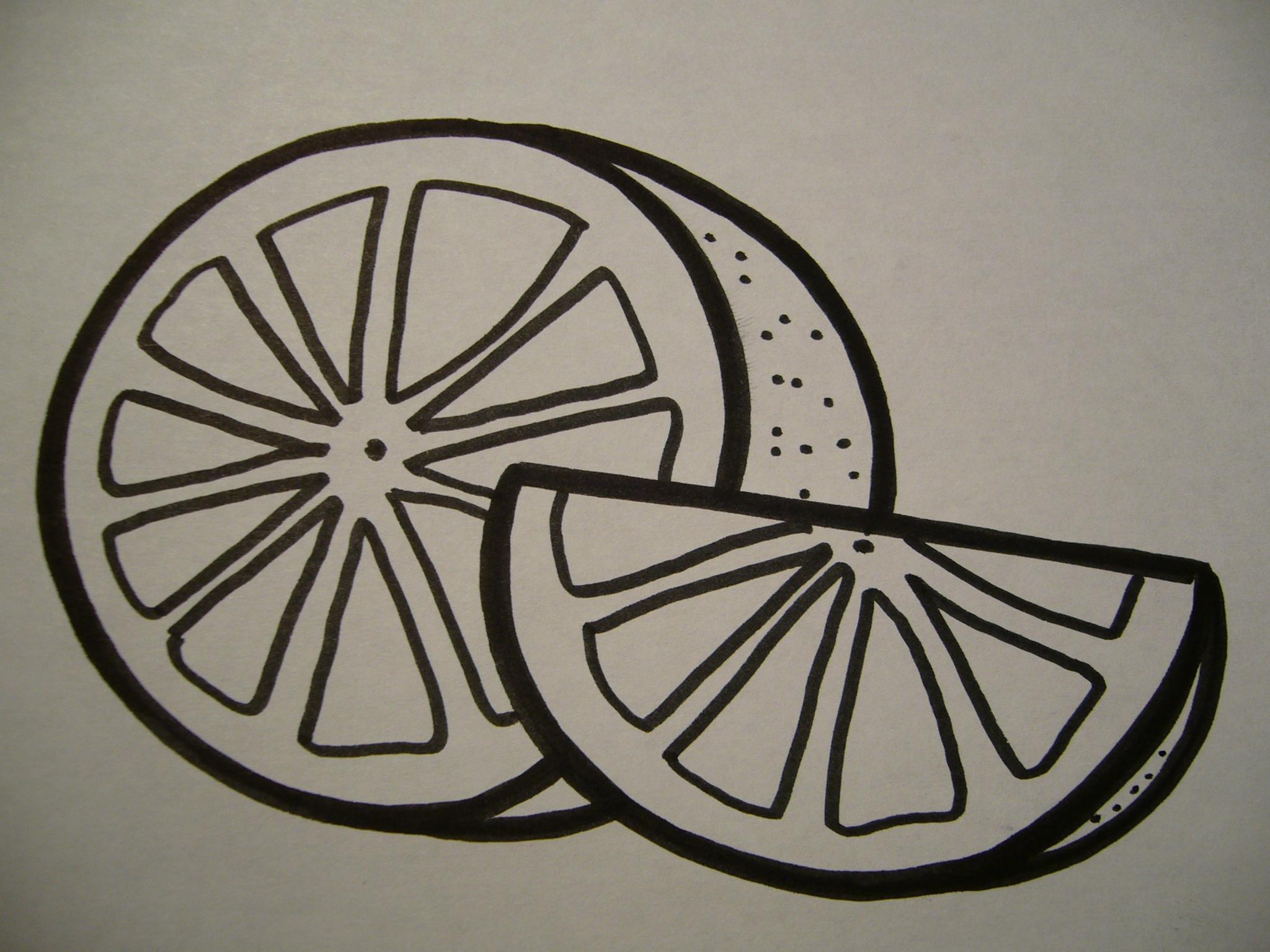 Empieza dibujando la forma general de la naranja abierta. Fíjate en la foto.