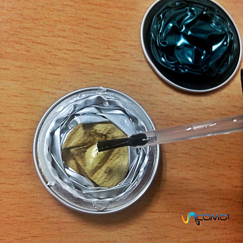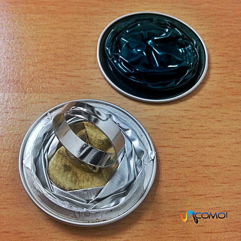 Seguidamente, deberás aplicar pegamento instantáneo o silicona caliente en la parte posterior de la cápsula aplastada.