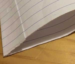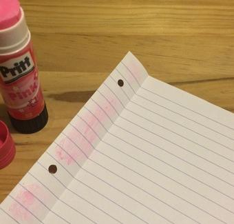 Haremos un pliegue de dos centímetros en una de las mitades del folio y pondremos pegamento en la cara interior del pliegue.