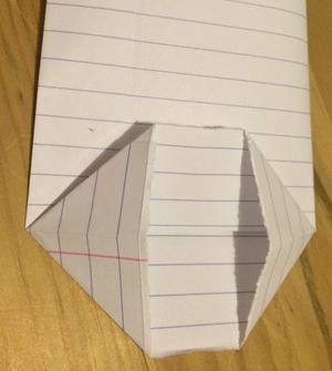 Ahora tiene una mitad del folio en forma de cubo, ahora deberás doblar un extremo de la hoja como ves en la foto para hacer la base de la bolsa de papel.