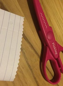 Cortaremos la otra parte del cubo con tijeras de formas para darle una forma divertida a la bolsa.