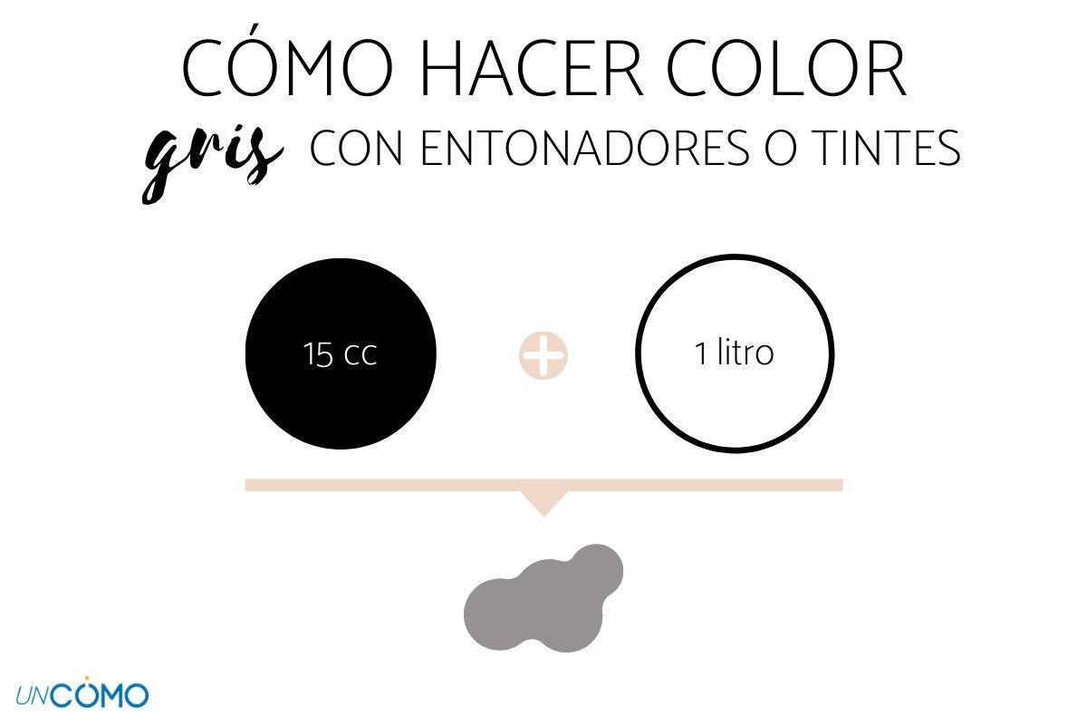- En función de la cantidad de pintura blanca que utilices en la mezcla, deberás regular el tinte negro a añadir. Si por cada 4 litros de pintura blanca se necesitan 60 cc de tinte negro para hacer el color gris, 1 litro requerirá 15 cc.