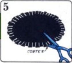 Para conseguir un efecto mayor, corta un círculo de tela negra fina, del tamaño de un platillo. Haz cortes por todo el borde. Ponlo sobre el carrete.