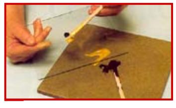 Apoya uno de los vidrios sobre la tela como si fuera un sello. Presiona y levanta el vidrio.