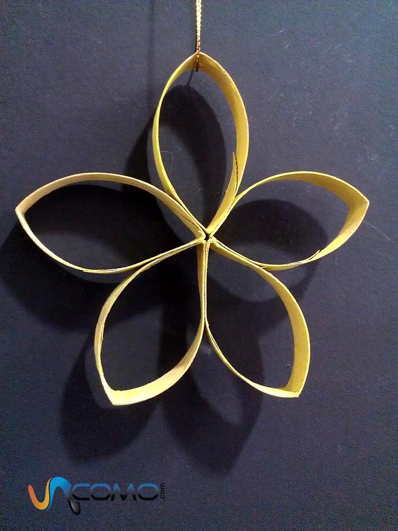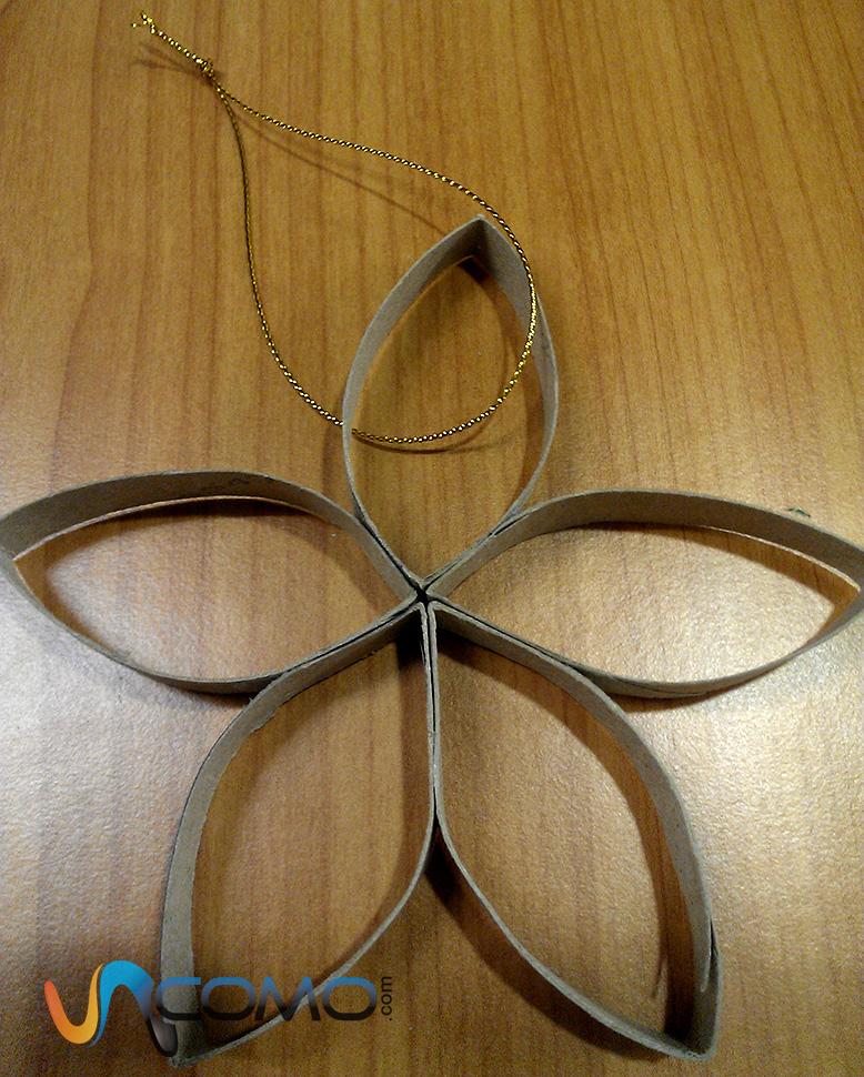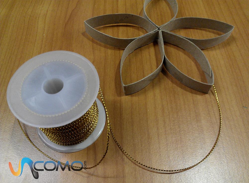Pasa el hilo por uno de los pétalos de la flor y anuda los extremos. Cabe destacar que puede usarse como adorno de Navidad para tu árbol o cualquier otro rincón de tu hogar
