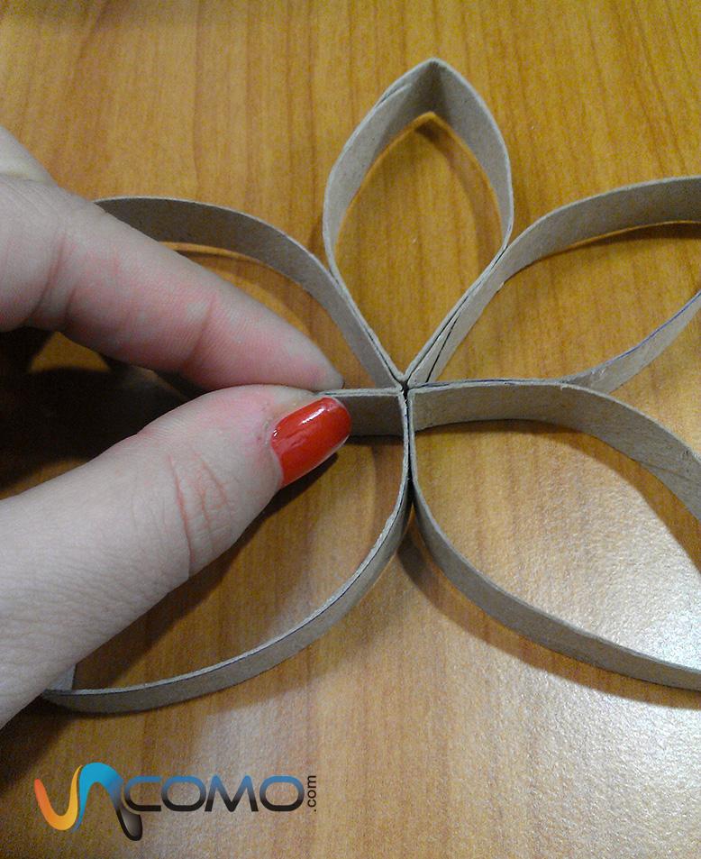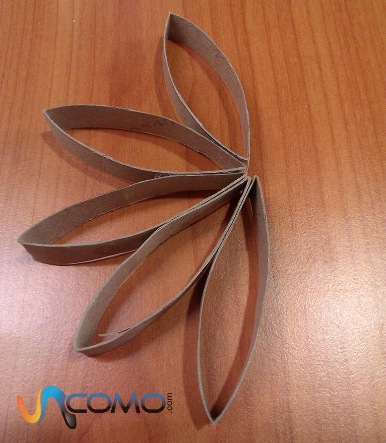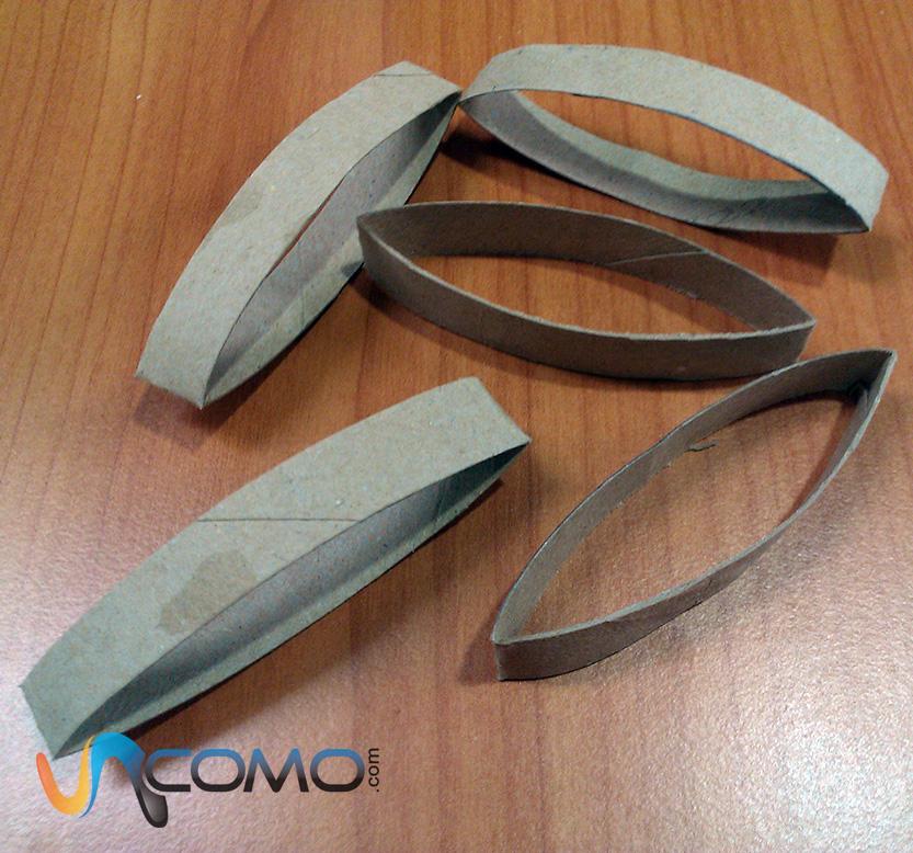 Necesitarás 5 tiras de cartón para hacer cada flor con tubo de papel higiénico.