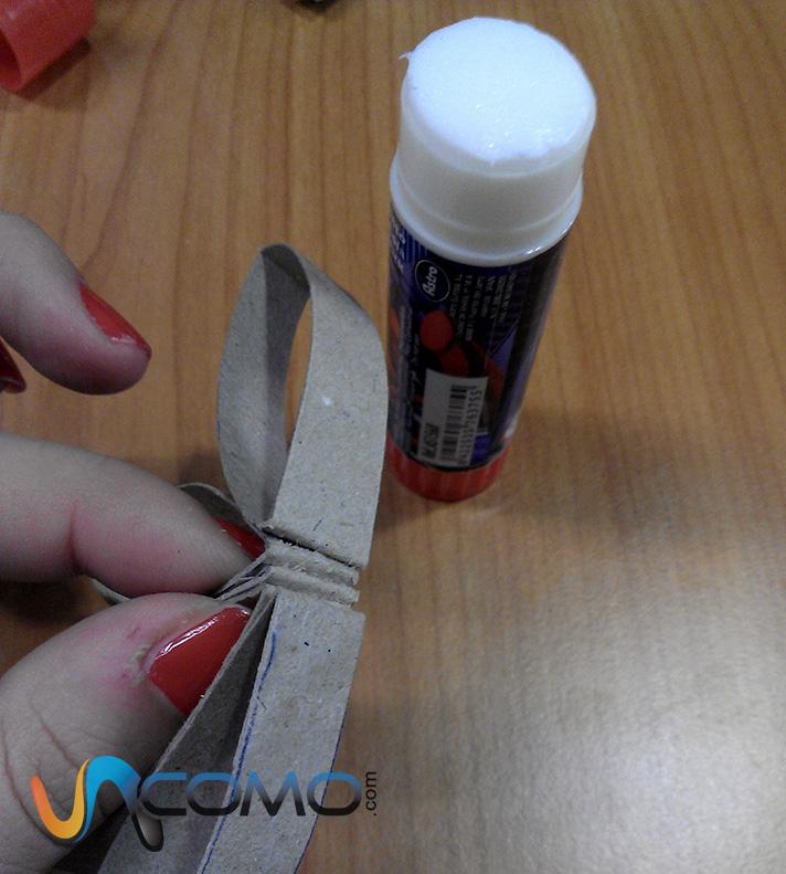 Pega la primera y la última tira para que adquiera forma total de flor; presiona después con los dedos para que no se suelte.