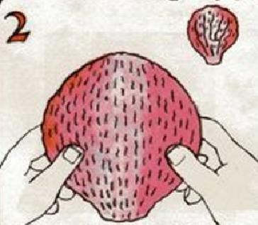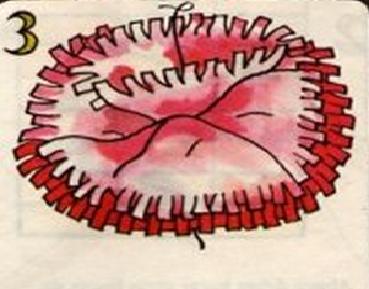 Claveles: corta 13 círculos de papel fino de 9 cm de diámetro. Dobla cada uno dos veces para formar un cuadrante. Corta flecos en los bordes como ves en la imagen.