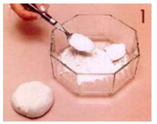 Primero de todo mezcla en un bol 6 cdas. de marmolina con 5 cdas. de tiza. vez agregando poco a poco 3 cdas. de engrudo, amasando hasta unificar los ingredientes