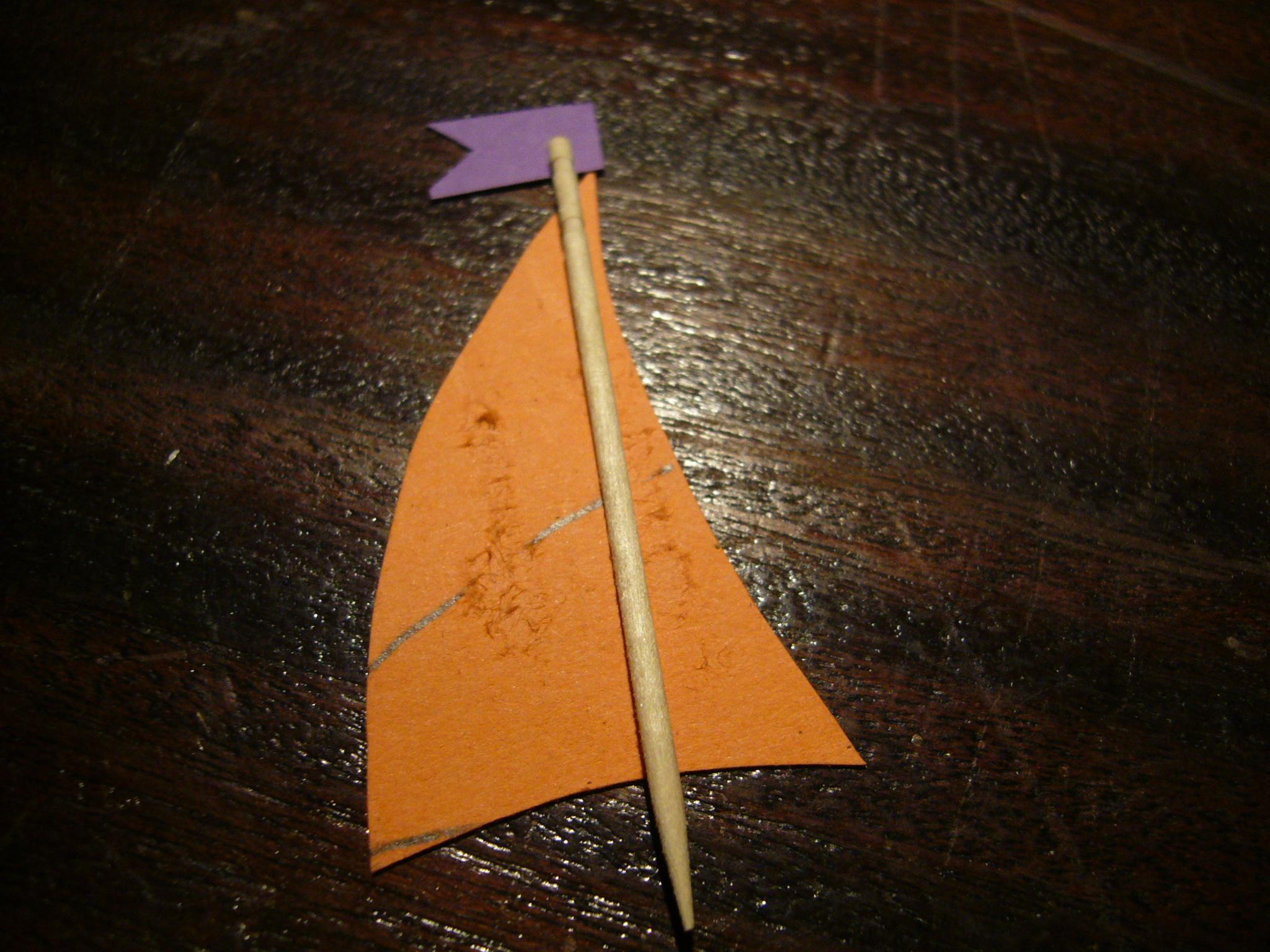 Recorta la vela. Puedes hacer una bandera para el barco si lo deseas.