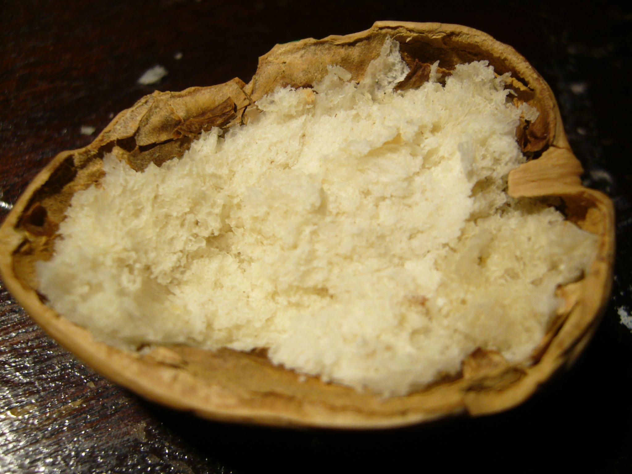 Rellena la media nuez con miga de pan.