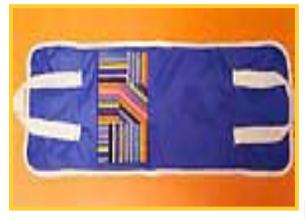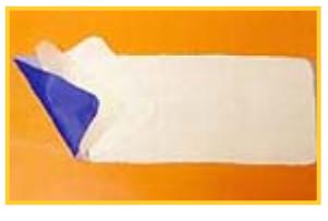 A continuación corta según el molde del bolso colchoneta una pieza en goma espuma y una en tela de toalla. Une estas dos piezas a la de siré con puntadas largas