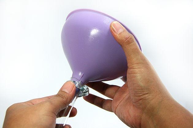 A continuación, inserta el embudo en el tramo corto del tubo, opuesto a la válvula, y fíjalo con una abrazadera.