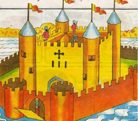 En el dibujo tienes un castillo. Soldados en el puente levadizo y en el torreón. La tierra entre las murallas y el torreón se llama patio. Las ventanas son muy estrechas para evitar la entrada de flechas y proyectiles enemigos. A continuación descubrirás cómo se hace el torreón y las cosas de que se compones un castillo. Mira el siguiente artículo de unComo, cómo hacer un castillo de papel.