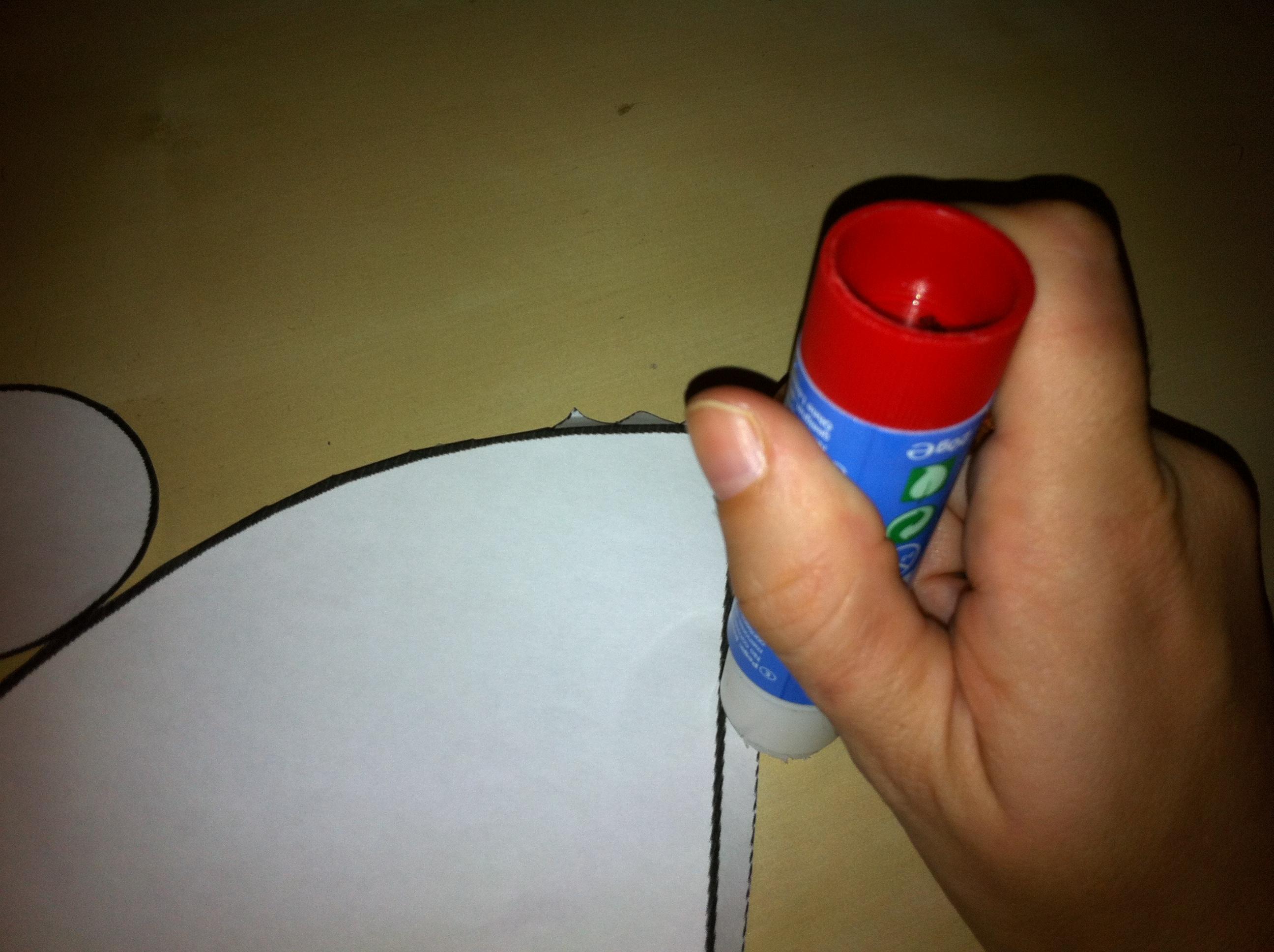 Pon pegamento a la pestaña más larga para formar un cucurucho.