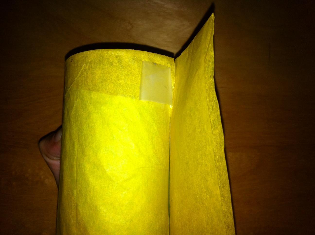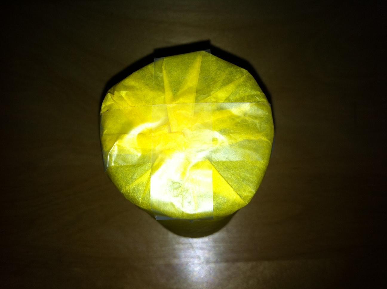 Vuelve a utilizar celo para pegar el papel de seda (el vaso tiene que quedar totalmente envuelto).