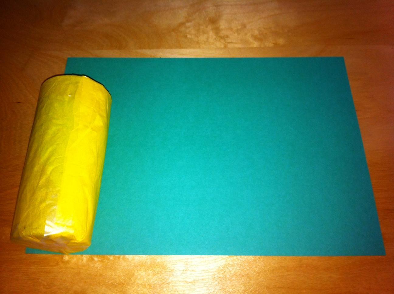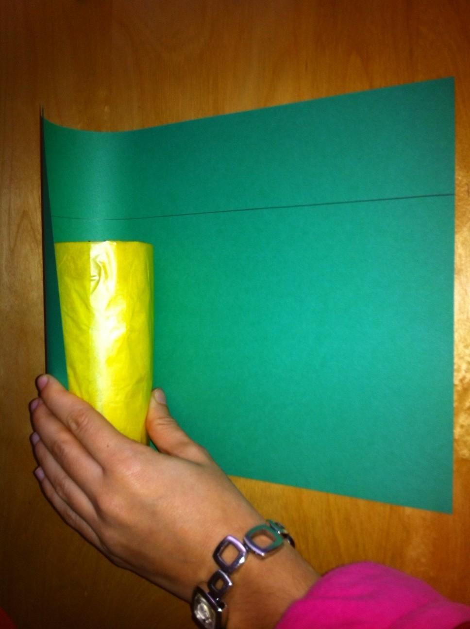 Coge papel de seda del color que más te guste y coloca el vaso en posición horizontal encima.