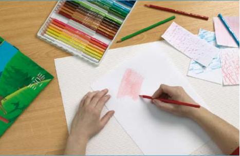 A continuación recortas otro trozo de cartón en forma de trapecio y la forras con los mismos papeles pintados con la técnica del frottage.