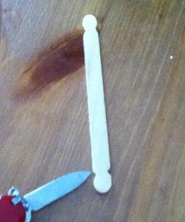 Haz 4 incisiones en los extremos del palo por estas incisiones deberá pasar la cuerda del arco, para empezar a elaborar el mini arco casero y su mini flecha.