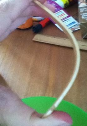 Dobla el palo un poco para que coja la forma que queremos, ya casi tenemos el arco mini hecho y nuestro niños de 10, 9 o 11 años podrán jugar con él.