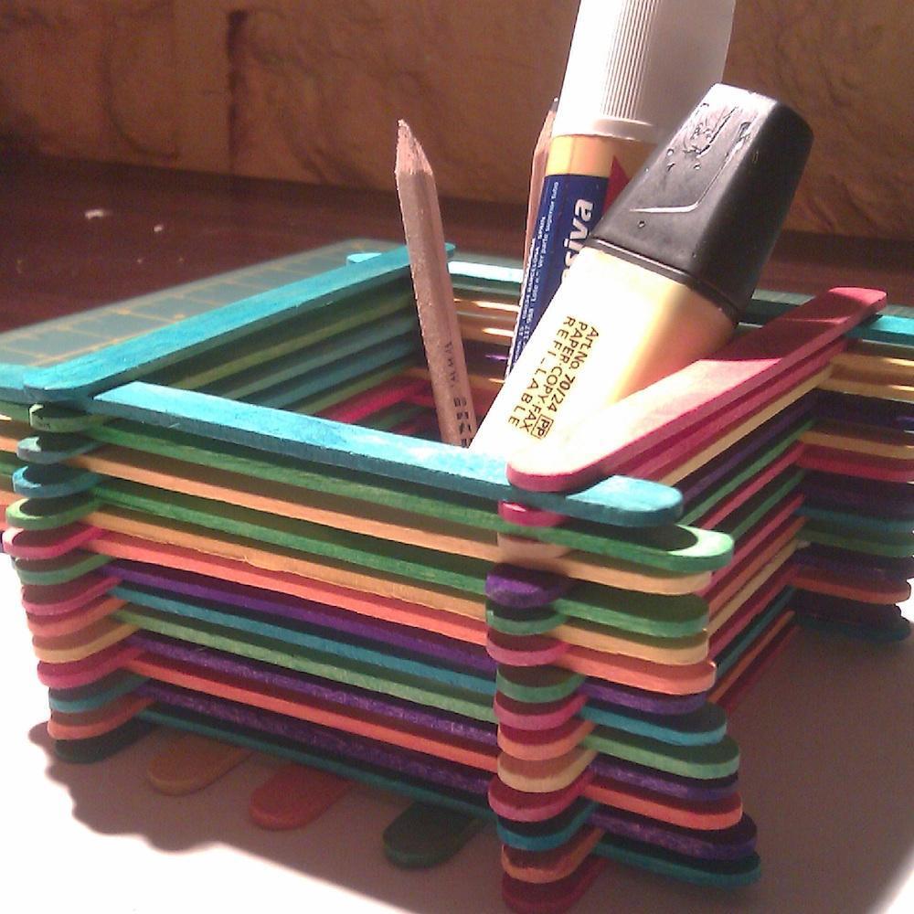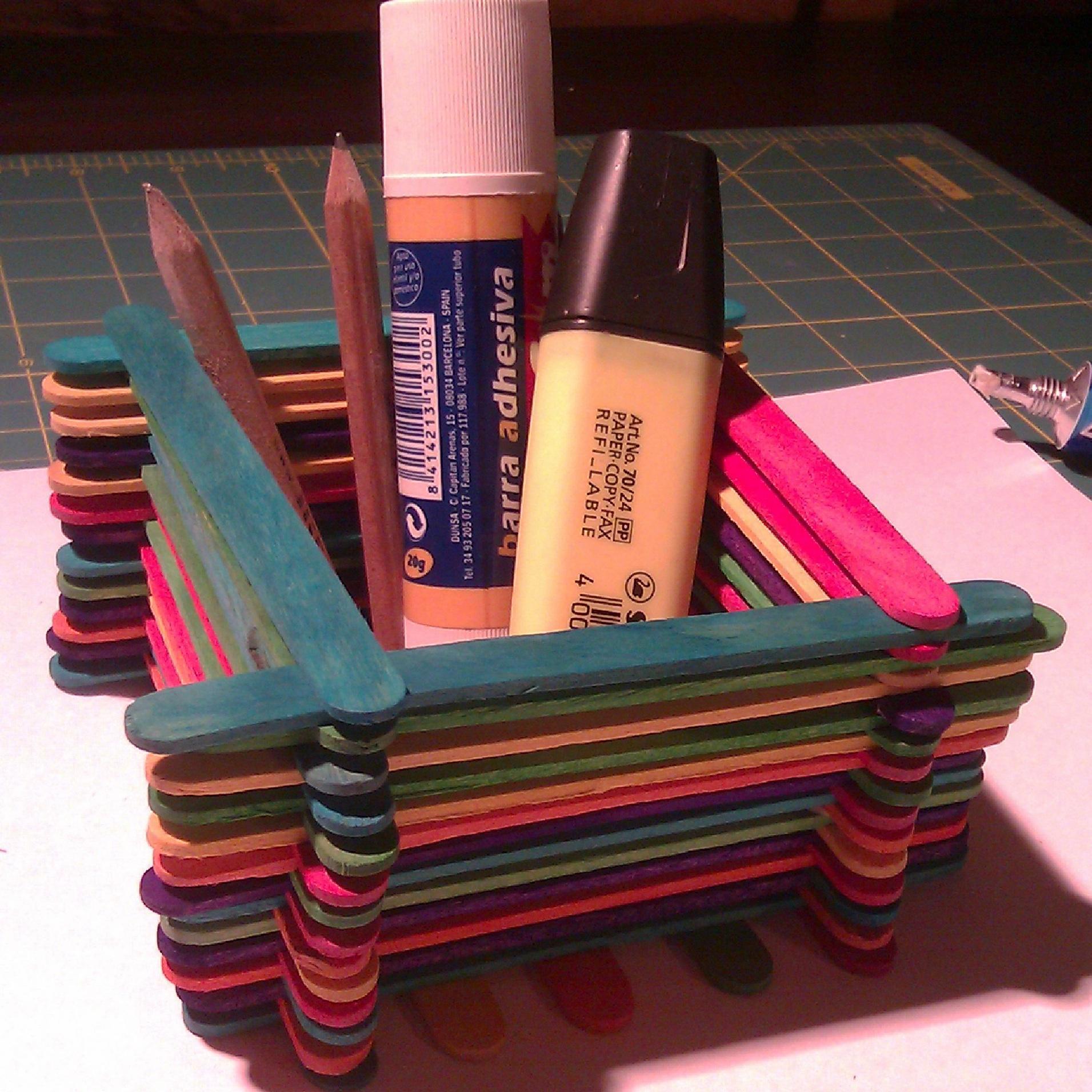 Cómo hacer un portalápiz con palos de polo