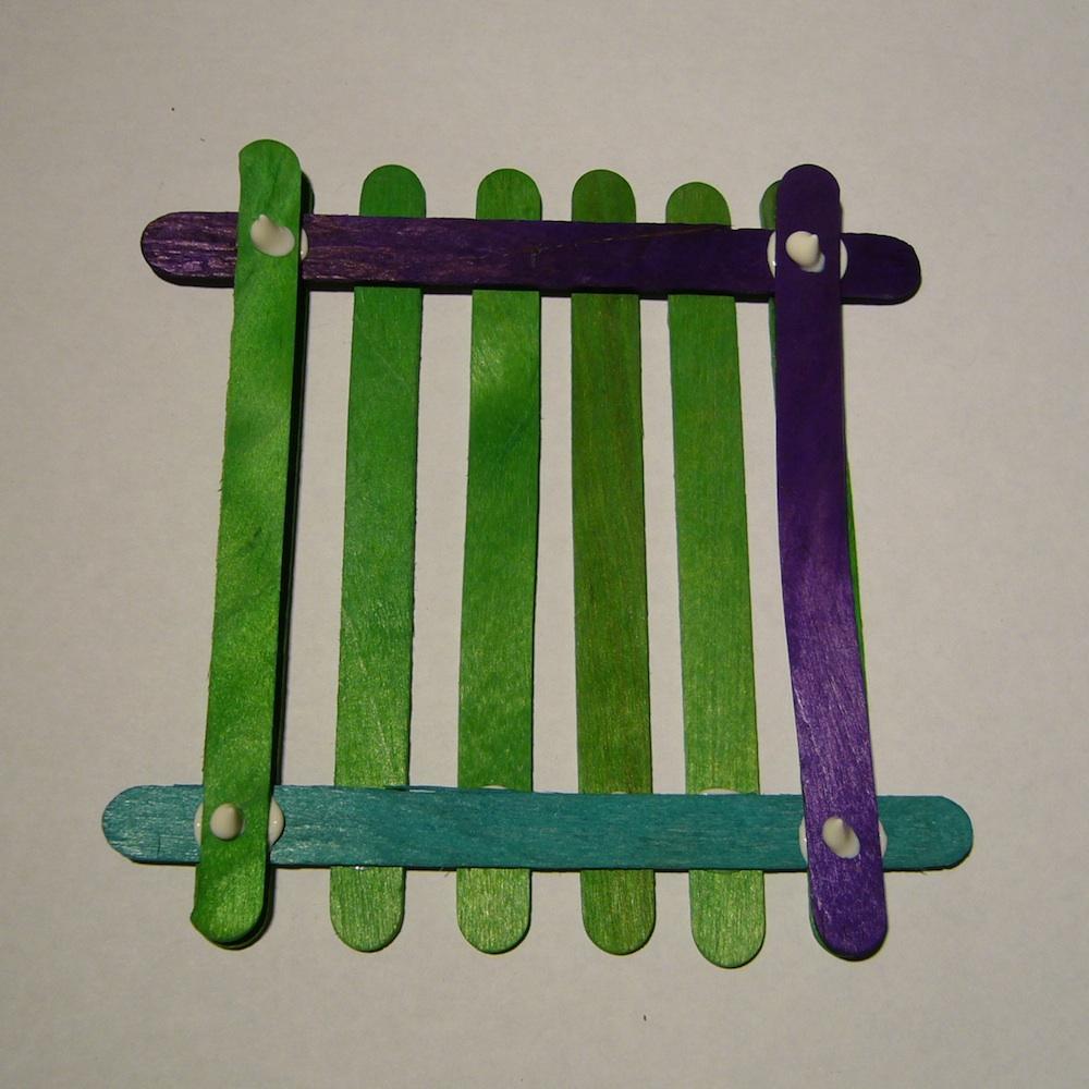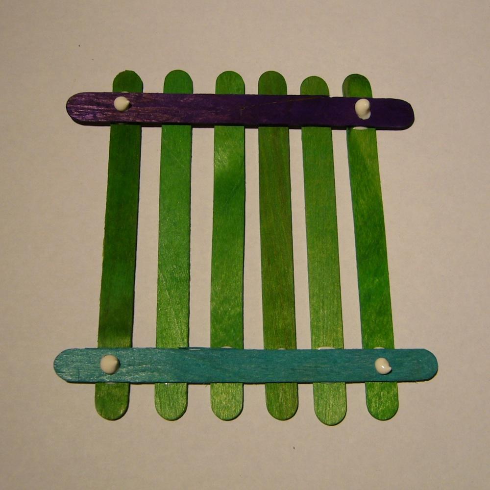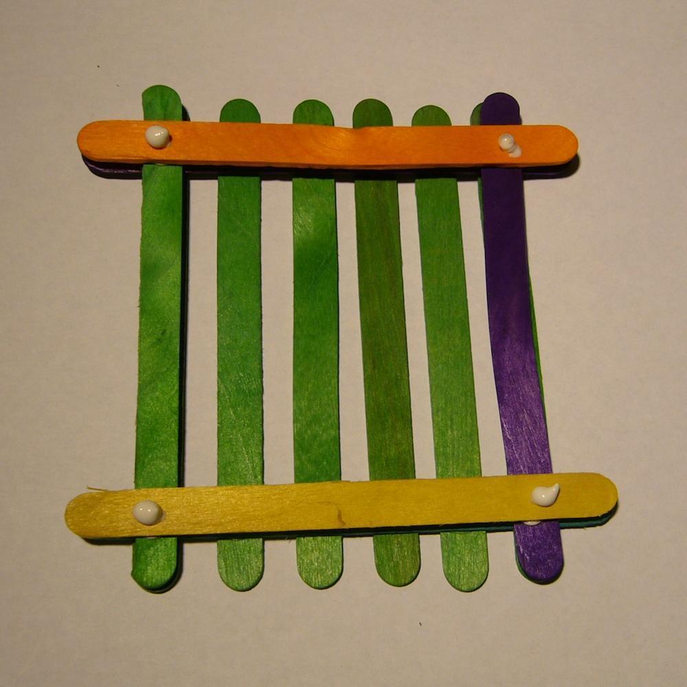 Encima de los palos horizontales pon otros palos verticales con pegamento a los extremos.