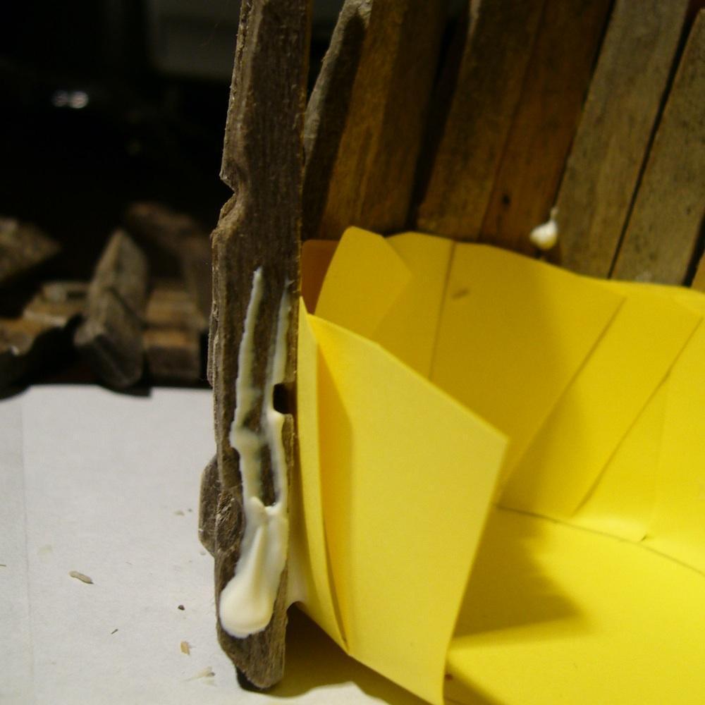 Dobla las pestañas que has hecho con las tijeras para dar la forma a la cartulina.