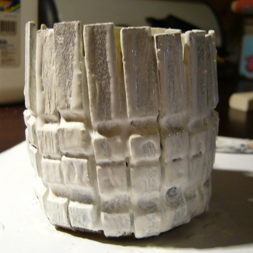 En la imagen te mostramos un ejemplo de cómo pintar el portalápiz. Primero se pinta de color blanco.
