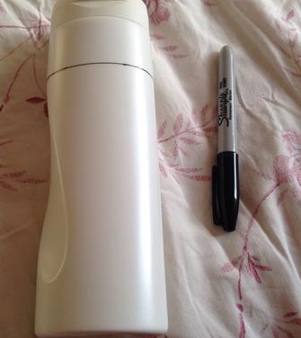 Lo primero que tenemos que hacer es reunir el material necesario: un pote de plástico, recomiendo usar un pote de HS (champú de pelo), le quitaremos la etiqueta, regla, rotulador, cutter, tijeras.