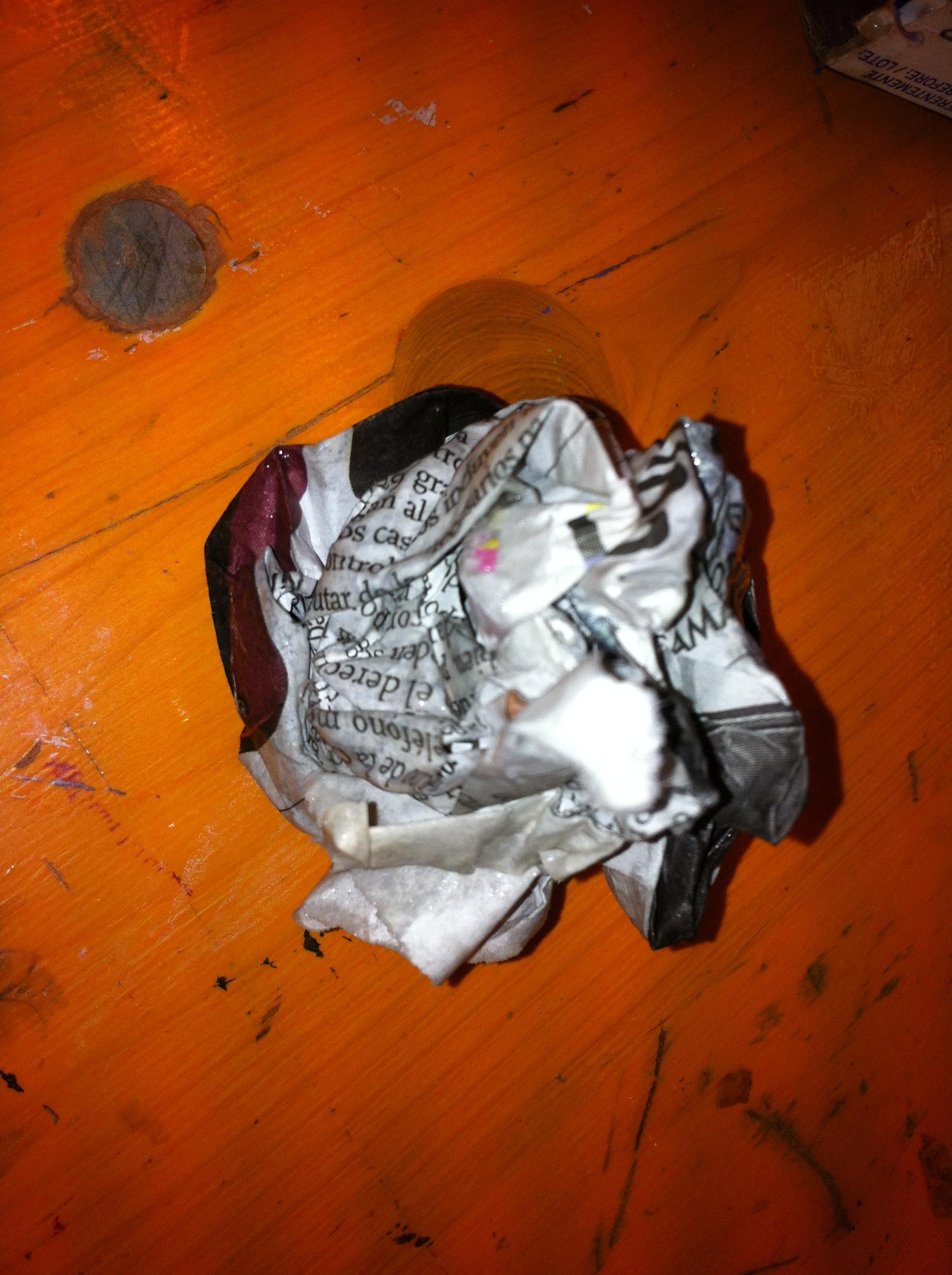 En este caso, he querido hacer un zapato de punta redondeada. Para ello, he cogido un trozo de papel de periódico y he hecho una bola.