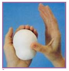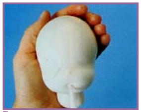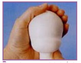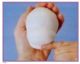 Primero usa la cantidad de porcelana equivalente a 1/2 su volumen. Forra el esfera de telgopor presionando la esfera d sobre la masa, sosteniendo esta con la mano ahuecada y haciendo un movimiento de vaivén, mientras con el pulgar de la otra mano se hace presión sobre la esfera.