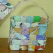 Para finalizar se hace el asa. Se entreteje de un costado a otro, dos tiras quedando una canasta multiuso. Tendría que quedarte como la que sale en la imagen.