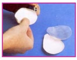 Para hacer el pimpollo del centro: usa los 5 pétalos de raso y de gasa restantes. Dale forma de capullo a un pétalo de raso. Sujétalo con unas puntadas. Agrega 1 pétalo de gasa en forma envolvente enfrentado al anterior. Coloca de esta forma los otros pétalos alternadamente. Sujétalo con varias vueltas de hilo.